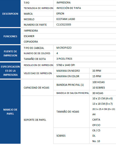 • Bandeja de salida 100 hojas o 20 hojas de papel fotografico 4"x 6".